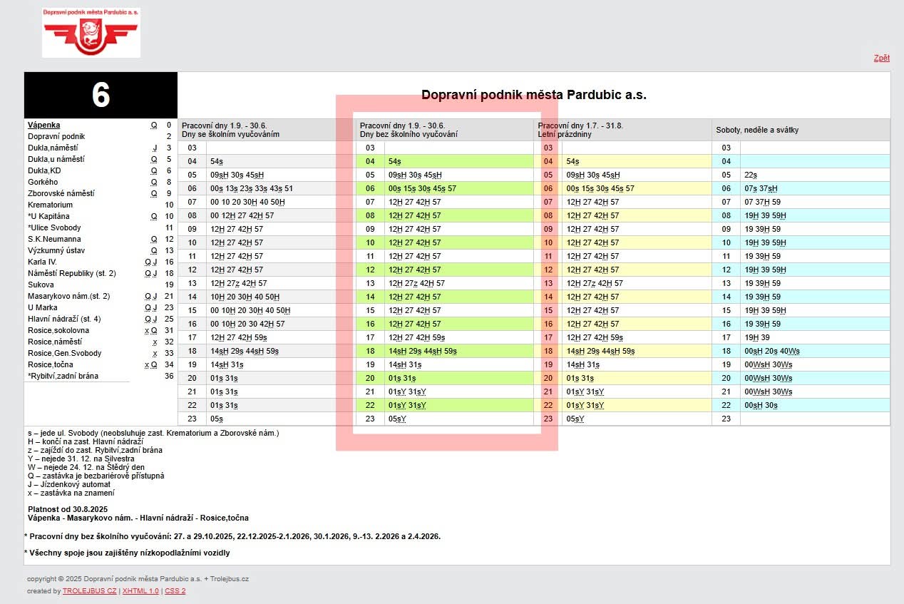 Upozorňujeme, že v pátek 30.1.2026 jsou školní prázdniny, spoje linek MHD tak pojedou podle druhého, zeleného sloupce jízdních řádů.